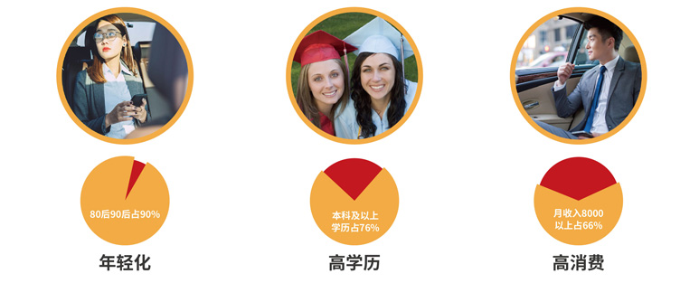 網(wǎng)約車的受眾人群呈現(xiàn)年輕化/高收入/高學(xué)歷的特點,與70%以上廣告主的目標客戶群體高度吻合,屬于金字塔尖的消費人群。