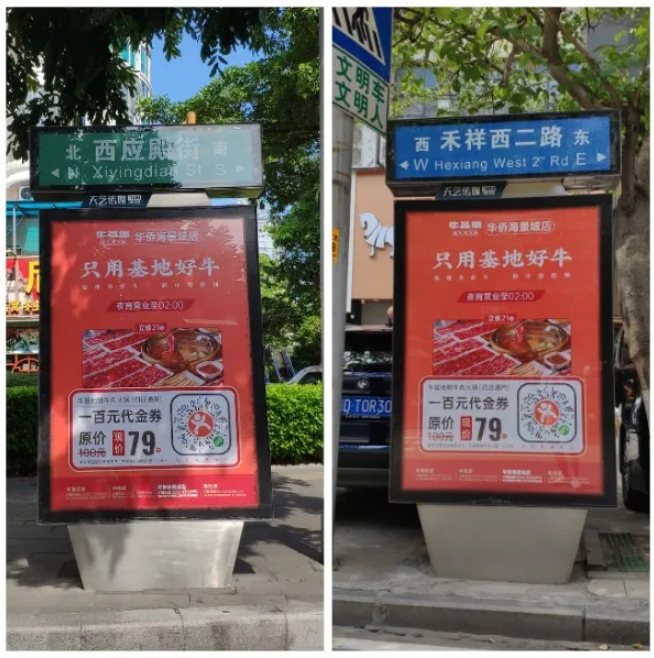 ?;嘏c天藝傳媒強強聯(lián)手,精準(zhǔn)宣傳將?;厝A僑海景城店附近的城市路名牌戶外媒體進行定點宣傳。