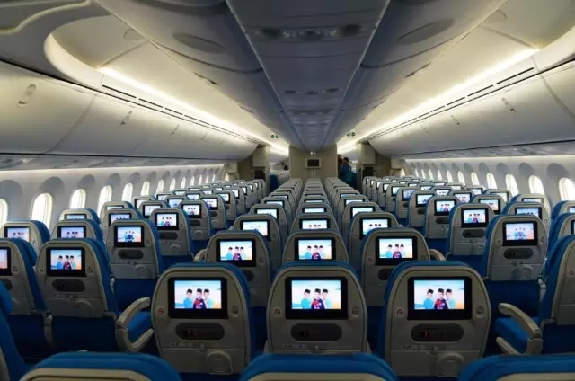 據(jù)介紹,B787-9可以搭載287名旅客,比B787-8的237個座位多出21%。在客艙布局方面取消了頭等艙的座位,改由30個商務艙和257個經(jīng)濟艙組成。