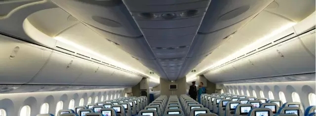 波音787-9型夢想客機較其它機型擁有更大的舷窗,更充足的行李空間。